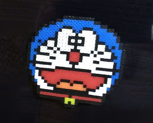 こんにちは、「たこやき。」です。 説明不要、国民的キャラクタードラえもんです。 元画像は今回もネット上からです。これまでよりちょっとだけ大きいサイズです。 ビーズは引き続き「創&遊 ミニミニアイロンビーズ 24色セット」で製作しています。 背景が…