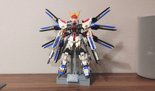 こんにちは、「たこやき。」です。 今回の作品は、「レゴ互換品」の製品で「ストームフリーダムメカ」です。アニメ「機動戦士ガンダムSEED DESTINY」に登場する、「ストライクフリーダム」をパクって、レゴ互換ブロックにより再現したものと思われます。