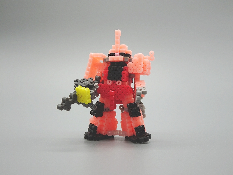 シャア専用機なのでカラーリングは「赤」のイメージですが、このザクⅡに関して言えばそこまで真っ赤という感じではないです。朱色からややピンク寄りのような赤ですね。