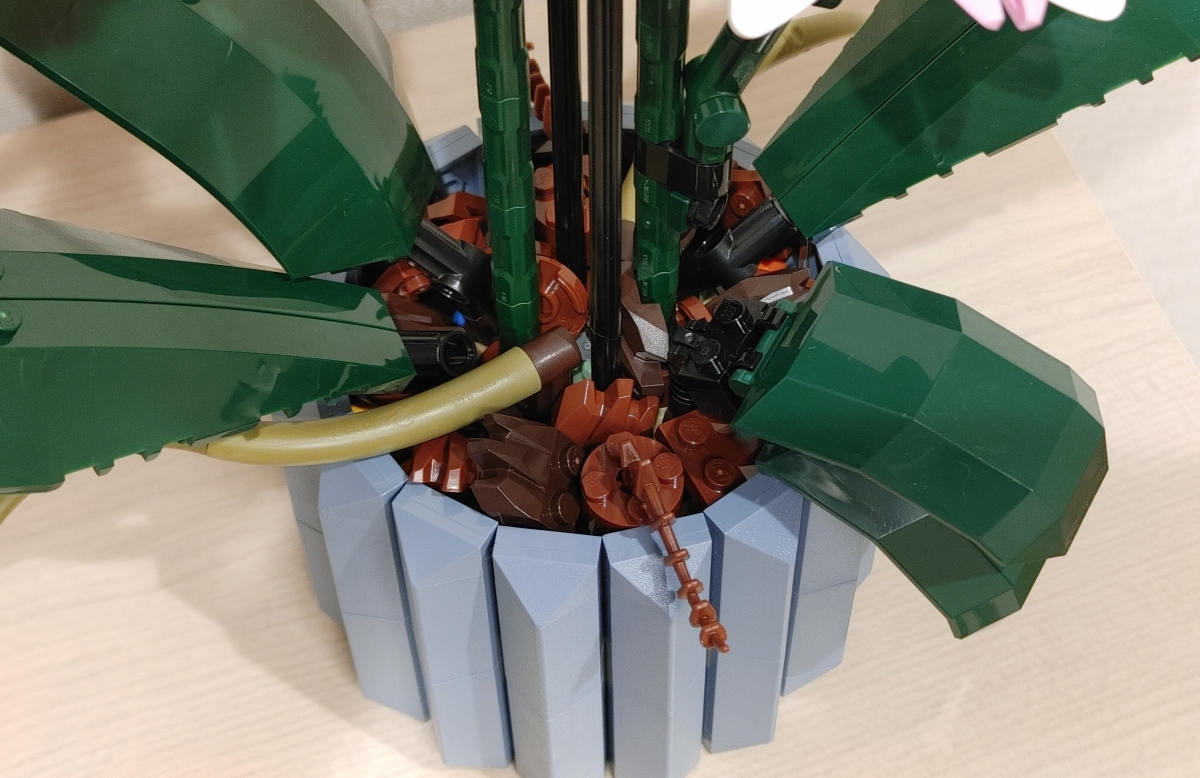 花の部分だけで無く、伸びる根の部分や鉢の土、支柱などレゴらしく細かなこだわりが感じられます。